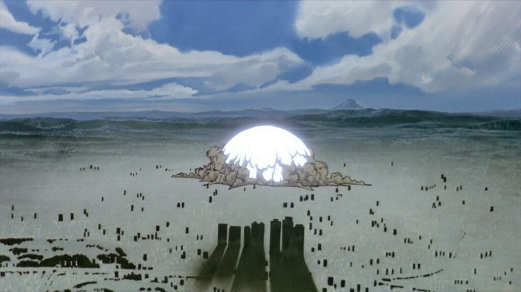 1988, une explosion détruit Tokyo et laisse la ville en ruines. Trente et un ans après, tout est reconstruit sous la forme de Neo-Tokyo, une métropole gangrenée par la corruption, la pauvreté et la délinquance. Les jeunes, chevauchant des motos stylisées en gangs, arpentent les rues arborées de néons et se battent tandis que le terrorisme règne et la révolution gronde. Dès le début, ?tomo nous plonge dans un univers où rien ne fonctionne. Ses plans d’exposition suintent le malheur et révèlent une société déliquescente, aux portes de l’implosion. Pas de dialogues futiles, simplement la beauté de l’animation – le film dispose d’un budget de plus d’un milliard de yens, colossal pour l’époque, et ça se sent -, pour un résultat frappant.