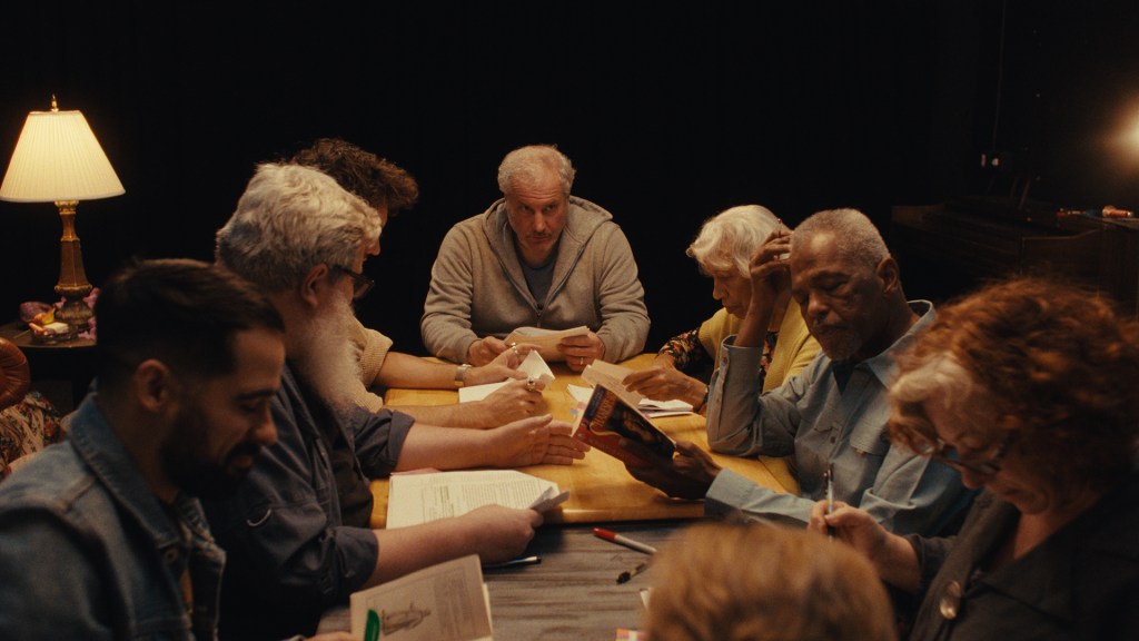 Un propos sur la classe moyenne, les laissés-pour-compte de l’Amérique moderne pointe son nez. Lors de sa pause déjeuner, Dan est confronté par un élément central, la compagnie de théâtre de l’autre côté de la rue dont une des actrices, Rita (Rita de Leon), vient se plaindre des travaux. Celle-ci repère dans la détresse de Dan non pas une faiblesse à réparer mais un outil émotionnel pour interpréter un rôle. Nul besoin d’entraînements, il suffit de savoir lire pour se glisser dans la peau d’un autre. Progressivement, l’homme se retrouve attiré par ce lieu et les personnes qui le constituent. Un territoire inconnu s’offre à lui : principalement composé de retraités, il n’en reste pas moins un endroit où une partie de la population américaine est représentée. Dan ne sait pas vraiment pourquoi il est là, ni que cette communauté s’apprête à prendre une place prépondérante dans sa vie. En plein processus de deuil, il se retrouve embarqué dans cette troupe joviale, formant un portrait aussi touchant qu’un brin naïf d’un groupe aux origines diverses.