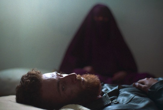 Le retour de Mehdi s’entoure d’une aura spectrale. Le réel d’une Aïcha surprise par sa présence est perturbé par sa silhouette révélée dans le flou d’un arrière-plan et par le regard vide et absorbé du jeune homme. Joobeur illustre la collision du perceptible et de l’insaisissable par la présence prémonitoire des chevaux (présents lors de la fuite des deux frères, puis resurgissant dans les pensées d’Aïcha aux souvenirs de ses fils) et par la figure fantomatique de Reem (Dea Liane), femme mystérieuse que Mehdi ramène avec lui dans son village. De ce corps porteur d’une nouvelle vie disparaissant sous le long voile d’une burqa, nous ne voyons que le regard bleu intense, absorbant quiconque questionne sa présence. D’abord perçue comme une figure de soumission (non vocale, interdite de connexion avec le reste de la famille), Reem laisse derrière ses sorties nocturnes et ses apparitions furtives une trainée d’ambiguïté plaçant constamment le spectateur dans le doute. Agneaux retrouvés morts et vagues de disparitions chez les hommes du village font osciller le personnage entre servilité muette et force exécutrice. Quand la jeune recrue policière Bilal (Adam Bessa) comprend le retour de son ami Mehdi et lui rend visite, l’invectivant pour avoir conduit son jeune frère à le suivre et se perdre dans sa déviance intégriste, la silhouette abattue de Mehdi s’efface devant celle de Reem, le faisant disparaître du cadre formé par leur porte, acculant Bilal contre celui-ci, et révélant ainsi une insoupçonnée menace. Le symbole d’oppression se mue en facteur oppressant pour tout l’entourage de Mehdi (la peur qu’éprouve Adam à l’approcher, l’incompréhension du père à ne la voir s’exprimer lors des repas, et le tiraillement de la mère qui perçoit dans l’enfant à naître une possibilité de renforcer les fondations familiales et dans cette inattendue et silencieuse belle-fille un ancrage résiduel de son fils à son expérience de dilution individuelle).