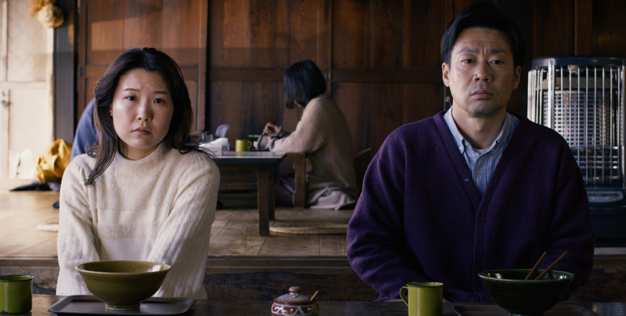Là où ses précédents films sont basés sur les dialogues, ce n’est qu’au bout de longues minutes que des mots sont prononcés. Takumi et Hana n’ont pas à extérioriser leurs pensées car tout se joue dans leurs gestes : faire corps avec le décor, ne pas le déranger mais vivre en paix avec. À l’opposé, Mayuzumi et Takahashi, deux représentants d’une firme de “glamping” (un mélange entre le camping et le glamour…) se doivent d’extérioriser, parler mais surtout expliquer. Un malaise s’installe lorsque, en perte de contrôle face aux villageois et villageoises, les employés perdus dans leurs statistiques s’opposent par le champ-contrechamp (presque trop net) à l’inquiétude des habitants. L’enjeu du langage redevient primordial en devenant une problématique de communication. Si la situation peut faire ressentir un malaise comique, elle n’en reste pas moins violente. D’une part, une structure capitaliste voulant se réapproprier des terres en détruisant un écosystème. De l’autre, des employés écrasés par la tâche ingrate de leur supérieur (qui n’osera jamais venir au village). Un point commun : aucun des deux ‘’camps’’ n’est entièrement responsable, pourtant chacun inflige du mal à l’autre.