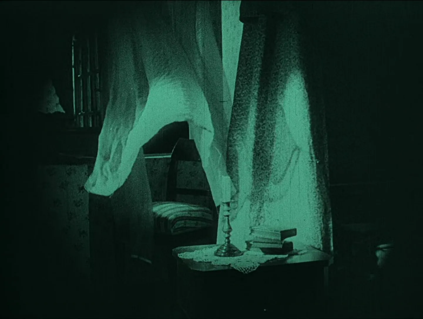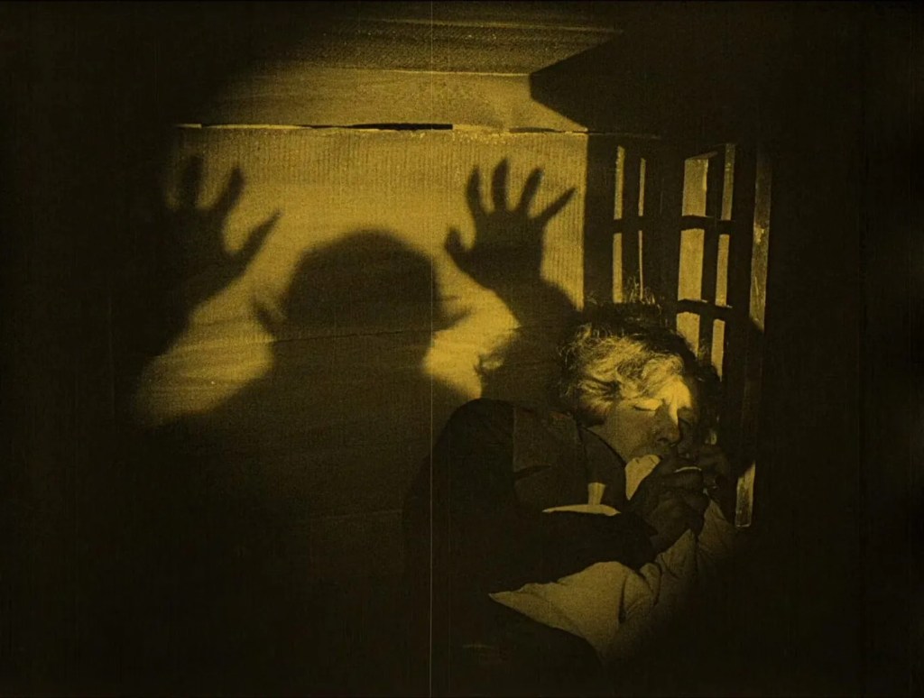 Un autre aspect fascinant de Nosferatu est la manière dont Murnau dédouble la menace en la reflétant sur plusieurs plans. L’attaque de Hutter dans le château est mise en parallèle avec les visions d’Ellen (Greta Schröder), son épouse restée à la maison qui semble ressentir à distance l’emprise du vampire – un trait que l’on retrouve dans le Dracula de Francis Ford Coppola, où Nina Harker (Winona Ryder) ressent les attaques du monstre à l’égard de son mari Jonathan (Keanu Reeves). Ce montage alterné, introduit par un carton annonçant « Au même instant », crée une connexion psychique entre les personnages comme si l’esprit de Nosferatu pouvait s’étendre à travers l’espace et affecter simultanément plusieurs individus. Ce dédoublement de la menace est particulièrement efficace car il suggère que ce mal n’est pas simplement une créature physique mais une présence mentale, une force capable de posséder à distance. Ellen, bien qu’elle ne soit pas directement attaquée, est comme capturée par cette même ombre qui dévore Hutter. Lorsqu’elle se lève soudainement de son lit, comme animée par une force invisible, elle incarne ce lien entre le physique et le psychique, entre la présence réelle du vampire et son pouvoir de suggestion. C’est une horreur qui s’insinue au-delà du visible, pénétrant les pensées, les rêves, les consciences. Ici, l’ombre n’est pas qu’une métaphore visuelle : elle incarne le pouvoir vampirique de Nosferatu. Il n’a pas besoin de toucher ses victimes ; son essence les paralyse, les enfermant dans un cauchemar inéluctable.