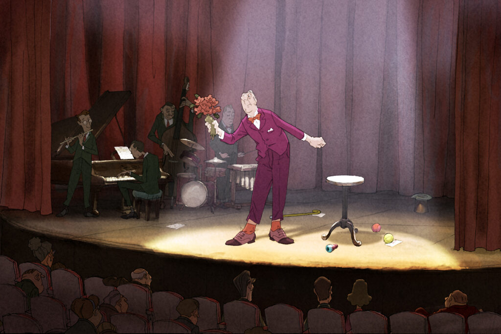 L’illusionniste de Sylvain Chomet, avec les voix de Jean-Claude Donda, Edith Rankin, Raymond Mearns... 1h20
