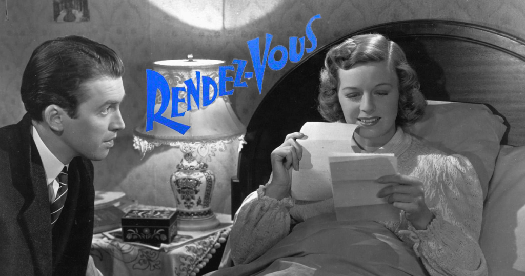 Rendez-vous, réalisé par Ernst Lubitsch. Écrit par Samson Raphaelson et Ben Hecht. Avec Margaret Sullavan, James Stewart, Frank Morgan… 1h39