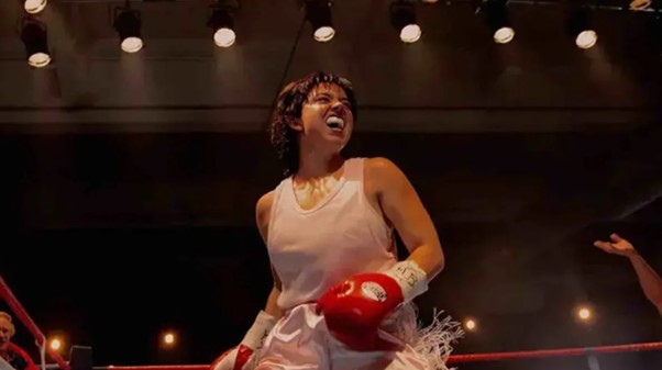 Christy est un film de performances, taillé en ce début Septembre pour l’ascension des marches du Dolby Theater en début d’année prochaine, dans lequel le trait d’un Foster tanguant sur le mince fil de la caricature et celui d’une actrice principale équipée pour changer son image publique est bien soulignée. Mais dans toute ses imperfections – et notamment une première heure qui ne dévie jamais de sa ligne conventionnelle de progression victorieuse, il existe une volonté apparente de Michôd sinon de déconstruire, de redessiner les limites d’une arène. Les scènes de boxe sont succinctes. Martin était expéditive, les séquences entre coin rouge et coin bleu le sont tout autant. Chez elle, dans sa cuisine ou son salon, le personnage est souvent bloqué dans les coins, recevant hagarde les coups (au figuré comme au sale) d’un époux jaloux et obstiné. Christy est avant tout la chose de James Martin, comme Mark Schultz était la chose de John Eleuthère du Pont (Foxcatcher, 2014). Le vrai ring de la jeune femme, c’est l’espace de son quotidien. C’est aussi sa bataille constante pour brandir son identité sexuelle bien plus haut que toute ceinture dorée sur laquelle le scénario se concentre. Suppléant le nom des prestigieuses adversaires mises KO sur la route de ses titres, le cinéaste s’attarde davantage sur les antagonistes de son propre cercle intime (sa mère intransigeante en premier lieu) et sur les opposants de l’ombre (les sparing partners silencieux lorsque témoins des violences de James, les autres boxeurs de la salle d’entraînement détournant le regard). De ses premiers émois à ses relations les plus décisives (incluant sa future femme, la boxeuse Lisa Holewyne, interprétée avec beaucoup de justesse par Katy O’Brian), Christy Martin a dû faire face aux constants regards humiliants de la part d’un entourage toxique et figé par un patriarcat imposant sa notion de la féminité et de la part d’une discipline sportive ayant longtemps regardé les performances des femmes sur le ring de haut. David Michôd livre une œuvre dont la résonance peut davantage toucher que la cinématographie – soignée mais sans véritable éclat – en présentant le parcours d’une survivante, d’une active supportrice pour les droits des femmes à aimer et s’épanouir comme elles l’entendent. En d’autres termes, d’une championne.